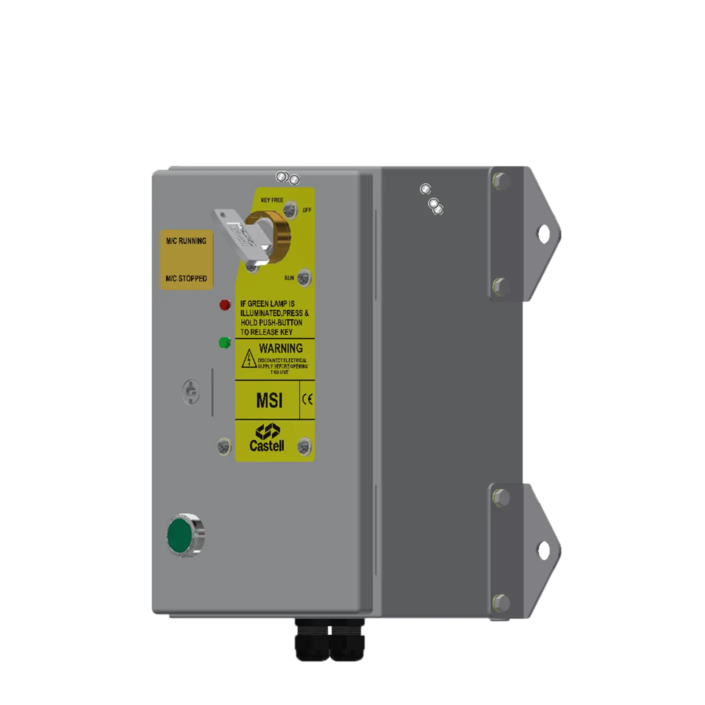 The MSI is designed to control access to rotating machinery that has a run-down time. The MSI relies on the detection of motion via two sensors. Only when both sensors detect zero movement can the key be released. The MSI has been designed to provide the highest level of safety when installed as part of an access control system for dangerous machinery.